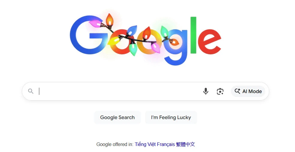 Google Search hôm nay thứ Hai 1-12-2025 đã thay logo gốc bằng Doodle mừng mùa Giáng sinh – Seasonal Holidays. Có cả dây đèn quả nhót nhiều màu chớp chớp bắt ghét. Ủa, vậy là sao hỡi làng Vũ Đại? Ngày đầu tiên của tháng cuối cùng của năm 2025. Kẻ bi quan hoang mang và tiếc nuối khi đã xài hết 11 tháng của quỹ thời gian 12 tháng