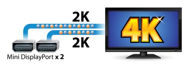 Thay vì chỉ có 1 cổng Mini DisplayPort, dòng motherboard Dual Thunderbolt được trang bị 2 cổng Mini DisplayPort 1.1 hỗ trợ độ phân giải 2K mà khi kết hợp lại với nhau sẽ cho ra độ phân giải tới 4K (độ phân giải của chuẩn Full HD hiện nay là 1080 pixel).