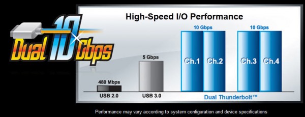 Là những motherboard đầu tiên được Intel cấp chứng nhận có chức năng Dual Thunderbolt, các model motherboard TH của Gigabyte cung cấp tốc độ truyền data tới 10Gbps từ mỗi cổng. Điều này có nghĩa là người dùng có thể truyền tải đồng thời data và đồ họa HD chuẩn công nghiệp.
