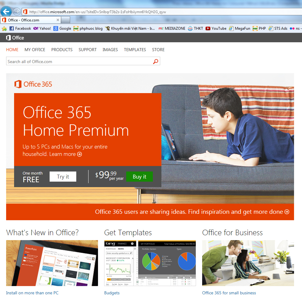 (STS:30.01.2013) Ngày 30-1-2013, Microsoft giới thiệu Office 365 Home Premium, bộ sản phẩm hoàn toàn mới của dòng sản phẩm Microsoft Office đã từ lâu nổi tiếng trên toàn cầu, nay được thiết kế lại, tích hợp sâu với dịch vụ điện toán đám mây và cung cấp đến khách hàng dưới hình thức thuê bao. Khách hàng của Office 365 Home Premium được tải và cài đặt bộ Office hoàn chỉnh lên 5 máy tính PC hoặc máy Mac, và thêm quyền cài đặt Office apps đến 5 thiết bị di động như điện thoại thông minh hoặc máy tính bảng (trong danh sách được hỗ trợ). Với tính linh hoạt này, bộ Microsoft Office mới là công cụ trợ giúp mạnh mẽ cho những người dùng bận rộn với những khối lượng công việc và trách nhiệm gia đình ngày càng gia tăng.