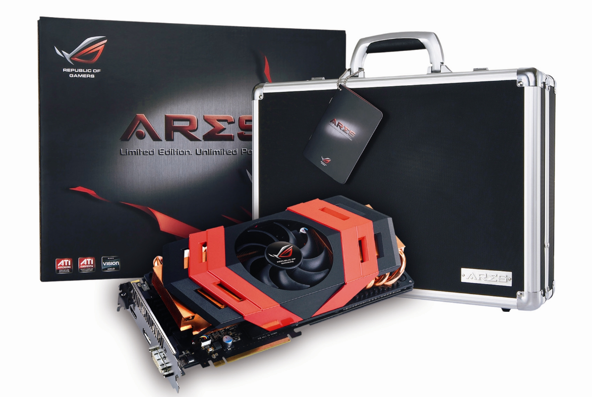 Và game thủ nào đang tìm kiếm một card đồ họa mạnh nhất, có được gói “Never Settle: Reloaded” đầy đủ có thể tham khảo card đồ hoạ ASUS ROG ARES II (phiên bản Limited). Card đồ họa này gồm 2 GPU AMD Radeon HD 7970 GHz Edition ép xung sẵn, được thiết kế 2 khe cắm, nên ROG ARES II sẽ thích hợp với nhiều thùng máy, có tản nhiệt lai thiết kế mới, kết hợp tản nhiệt chất lỏng và tản nhiệt khí.