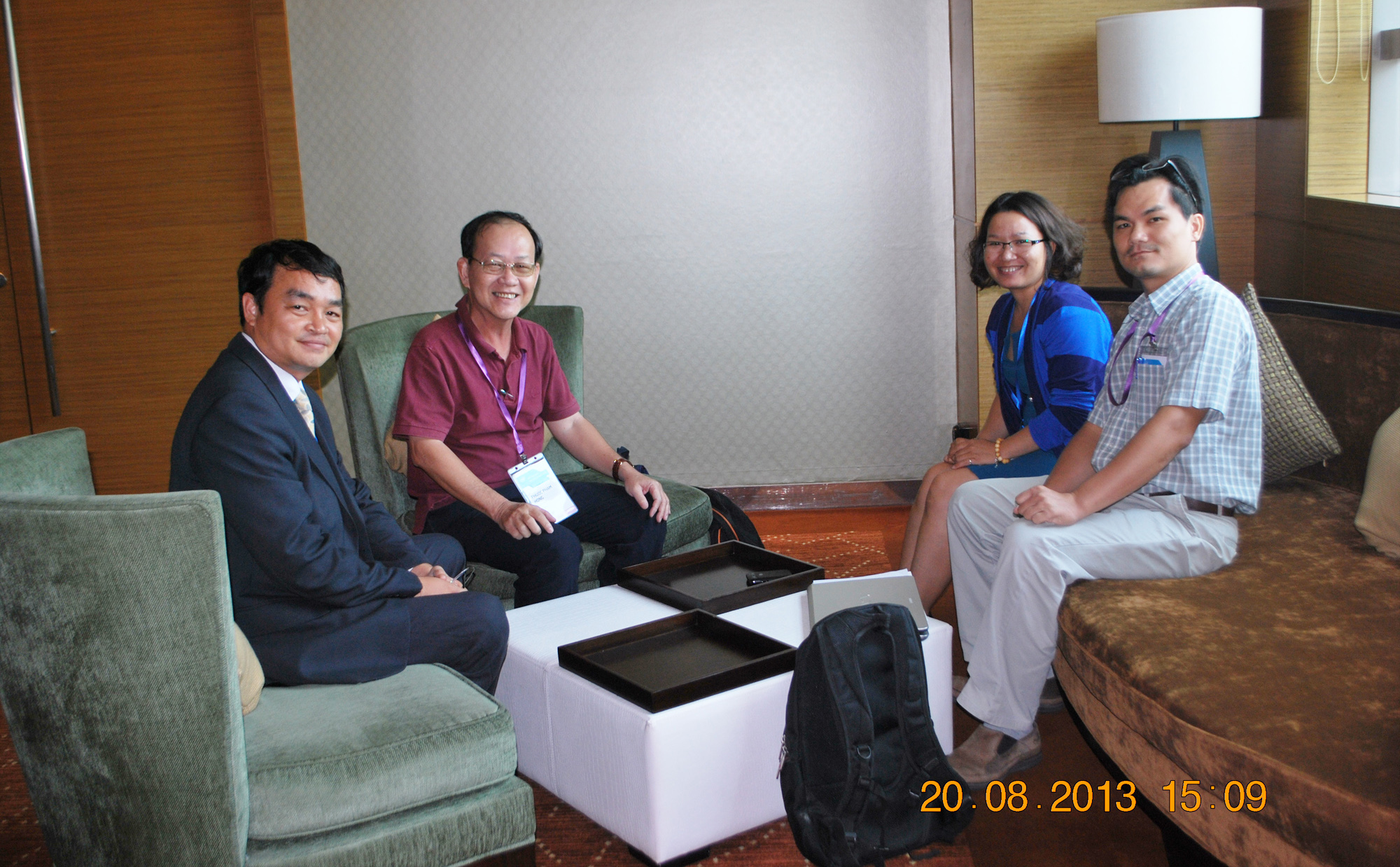 Từ trái: ông Mai Sean Cang, TGĐ Intel Việt Nam; PHP; cô Hồ Thị Vui, nhân viên PR của Intel Việt Nam; và bạn Đông Quân của tạp chí Thế giới Vi tính.