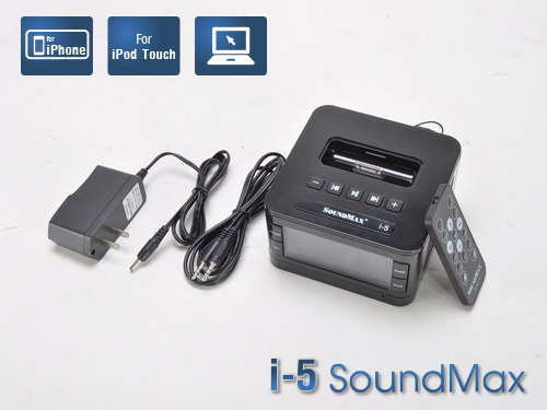 SoundMax i-5 có khá nhiều tính năng hấp dẫn khác như phát FM, hẹn giờ bật/tắt loa, báo thức, sạc pin cho iPhone, iPod.