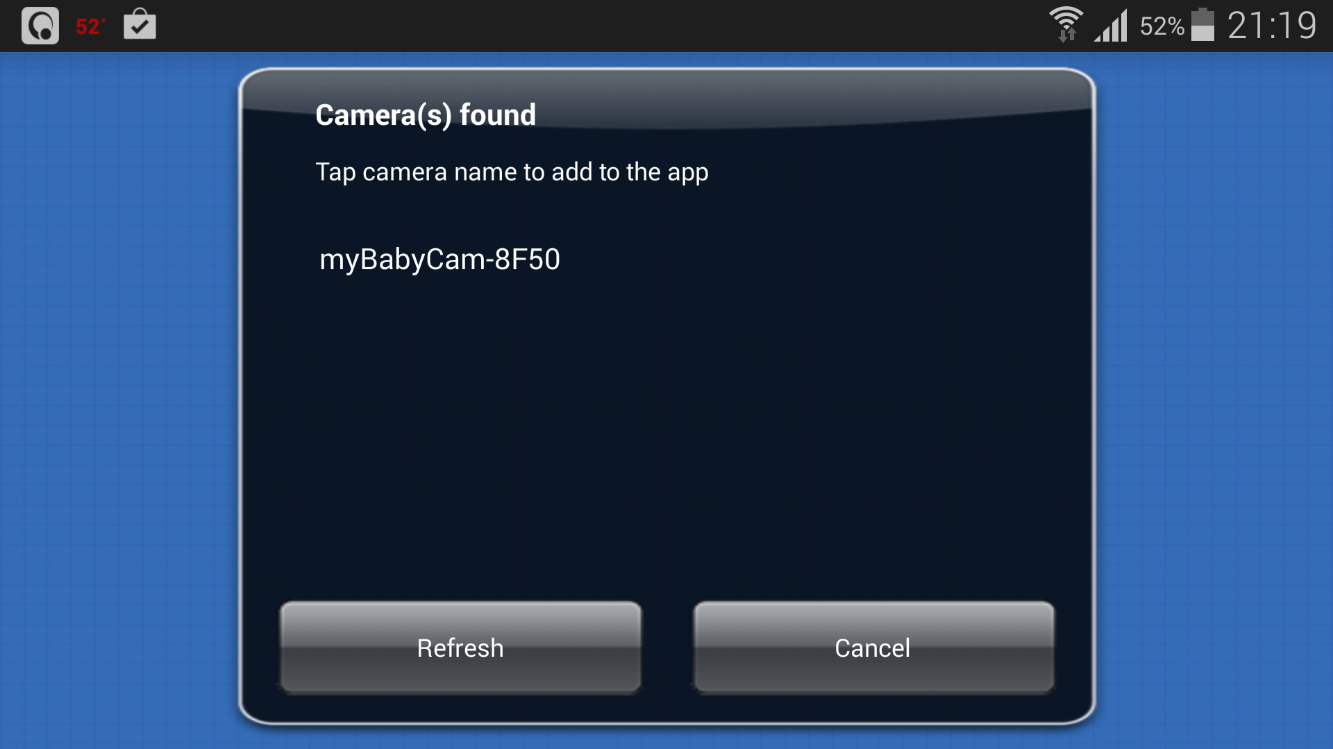 Xuất hiện màn hình cho thấy tên camera mà nó tìm được. Nếu không thấy tên gì, bạn nhấn vào nút Refresh. Nếu thấy đúng tên rồi, bạn nhấn lên tên của camera.