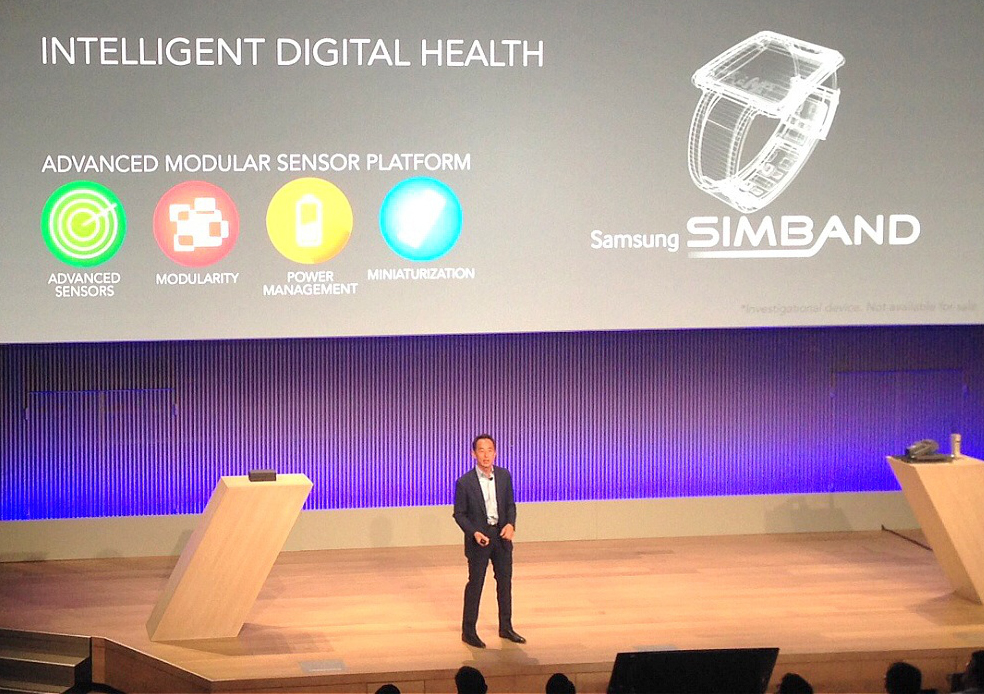 Nhân dịp này, Samsung cũng giới thiệu nguyên mẫu của một thiết bị chăm sóc sức khỏe đeo tay thế hệ mới tên là Simband. Nó sẽ theo dõi mọi biến chuyển trong cơ thể bạn chứ không chỉ giới hạn trong việc đo nhịp tim, lượng calory,… Nó được Samsung xuất xưởng dưới dạng một bộ khung mở để cho phép các công ty khác có thể tích hợp vào đó các cảm biến riêng của họ. Các cảm biến trên Simband tương lai có thể là một cảm biến PPG đo các thay đổi trong dòng máu lưu thông và giám sát các dấu hiệu sống còn như nhịp tim và huyết áp; cũng như một cảm biến ECG giảm sát tốc độ và tình trạng đều đặn của nhịp tim.