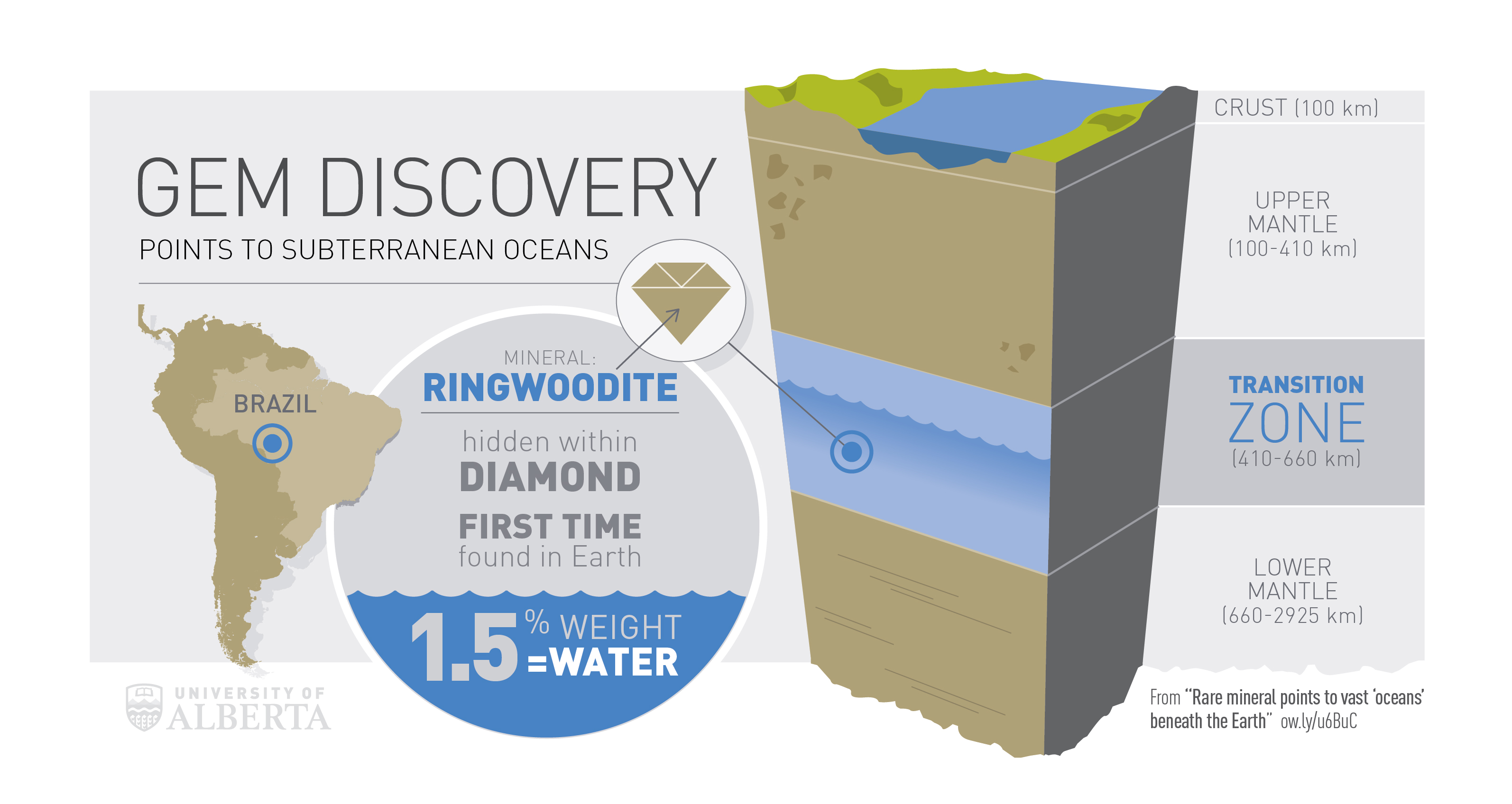 Lớp vỏ manti (mantle) của Trái đất là lớp đá nằm giữa lõi (core) và vỏ (crust) của hành tinh. Lâu nay các nhà khoa học vẫn hồ nghi rằng “vùng chuyển tiếp” (transition zone) của lớp manti này, nằm giữa hai lớp manti trên và manti dưới sâu dưới lòng đất từ 410km tới 660km có thể chứa nước dưới dạng các khoáng chất hiếm. Tuy nhiên, mãi tới nay họ mới phát hiện được bằng chứng trực tiếp của loại nước này.