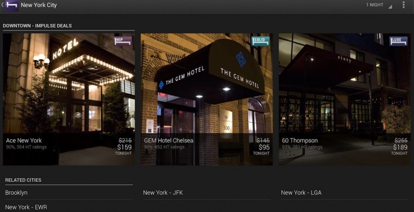 Hotel Tonight là một dịch vụ di động cho những khách du hành phút cuối, cho phép họ tìm một phòng khách sạn còn trống, chỉ mất 10 giây để book phòng, có giá vừa phải và có thể ở lại một khách sạn tới 5 ngày.