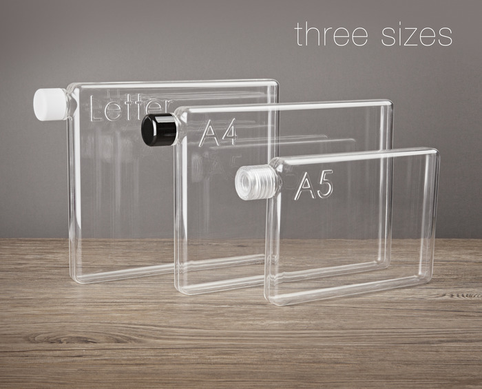 Các chai đựng nước kiểu mới này có nhiều kích thước và màu sắc khác nhau. Điều thú vị là kích thước của chai nước dựa theo khổ giấy hiện nay. Chai nhỏ nhất là A5 (750ml) và lớn nhất là Letter (1,25 lít). Chúng được sản xuất bằng vật liệu nhựa an toàn Eastman Tritan copolyester không chứa các hóa chất độc hại, dễ dàng rửa,…