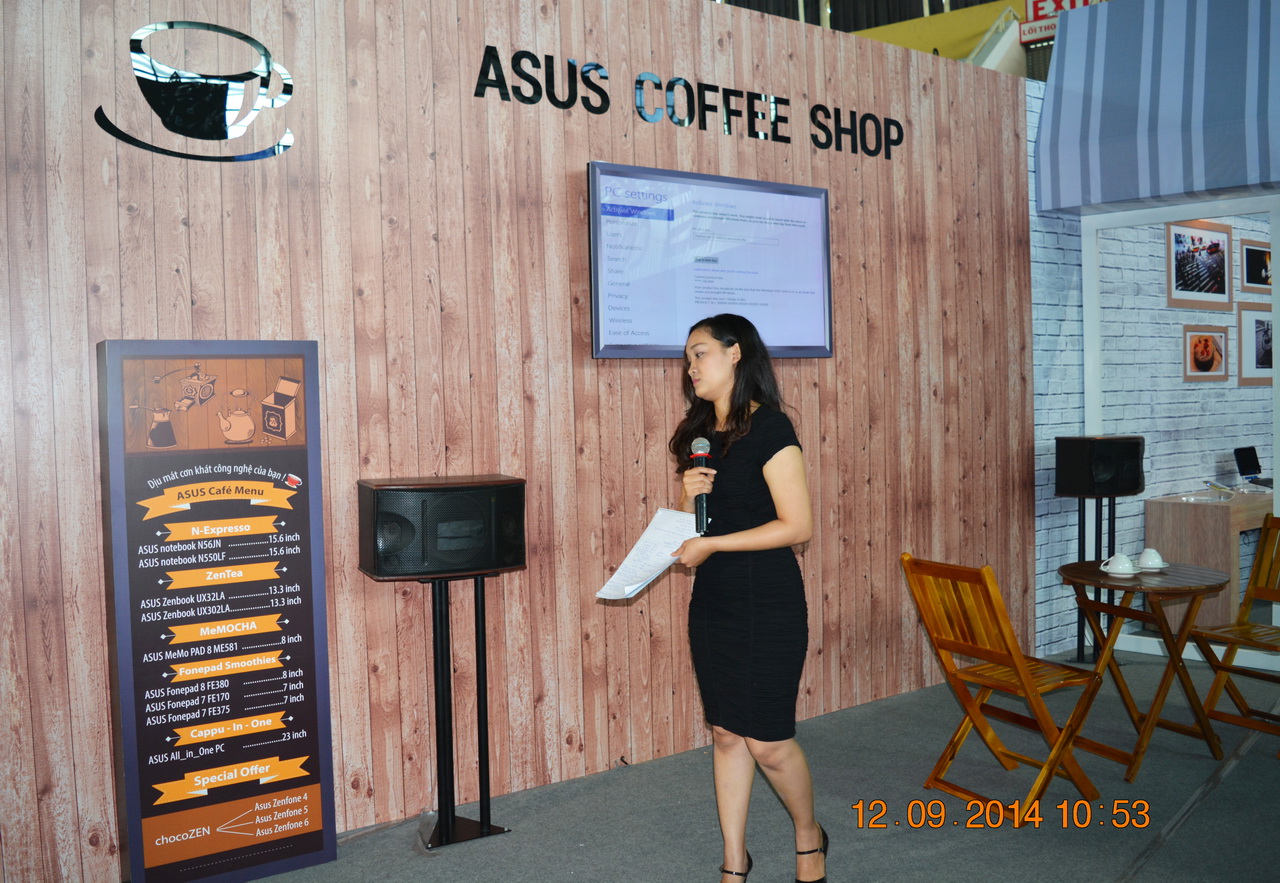 - ASUS Café: hòa mình vào không gian thư giãn ngoài trời hoặc trong các quán café, cạnh các tiện ích giải trí di động tuyệt vời như Fonepad 8 (FE380), chiếc tablet 8 inch tích hợp 3G cùng kho ứng dụng âm nhạc, sách báo, phim ảnh, trò chơi phong phú từ Google Play.