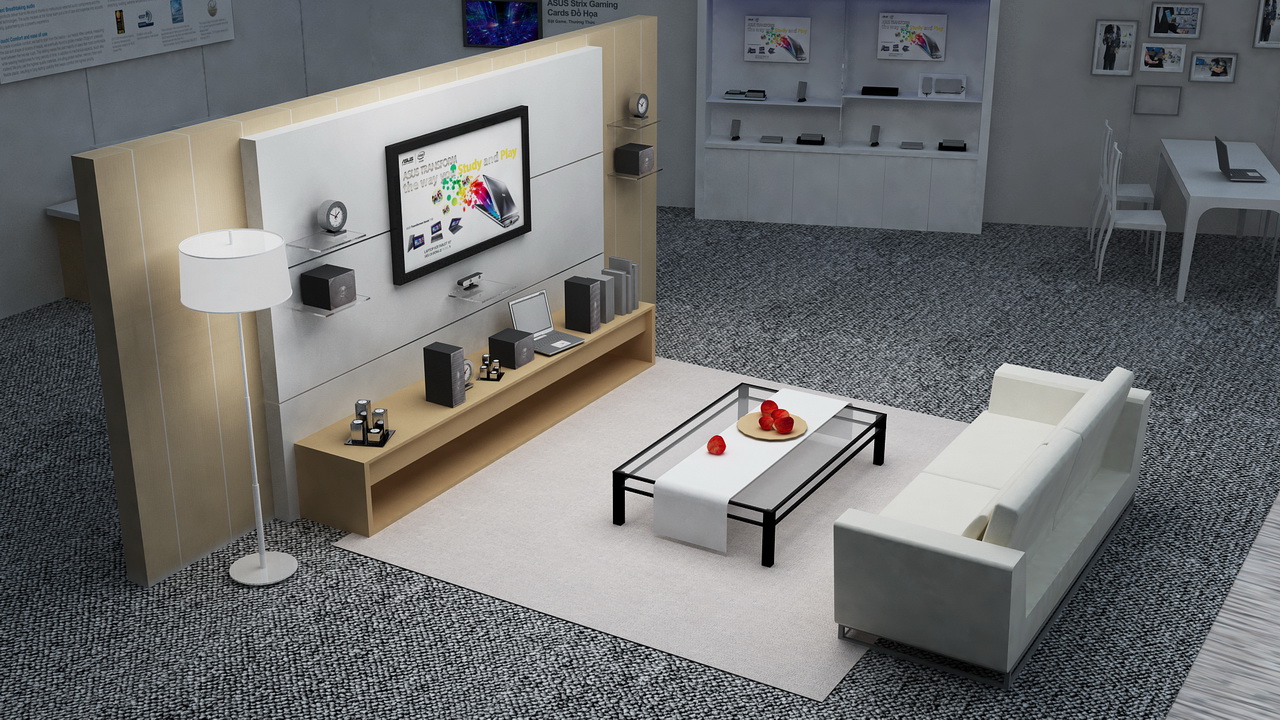 - ASUS & Gia đình: không gian thiết kế ấm cúng như một ngôi nhà số với những gợi ý lý tưởng cho các thành viên trong gia đình. Một chiếc máy tính All-in-One PC để bố làm việc, mẹ giải trí, con cái học hành hoặc chiếc Vivo PC nhỏ gọn tiết kiệm diện tích mà vẫn đảm bảo hiệu suất xử lý cho mọi nhu cầu.