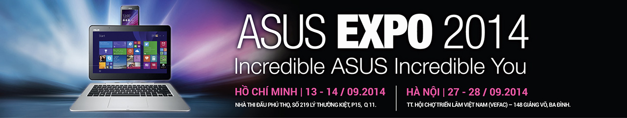 (STS:12.09.2014) Ngày 12-9-2014, ASUS Việt Nam khai mạc triển lãm công nghệ thường niên quy mô lớn nhất trong năm của mình ASUS Expo 2014 tại Nhà thi đấu Phú Thọ (TP.HCM) với chủ đề “Incredible ASUS. Incredible You” (Cùng ASUS: Thỏa đam mê, Tạo khác biệt).