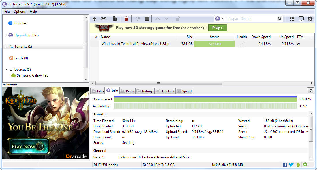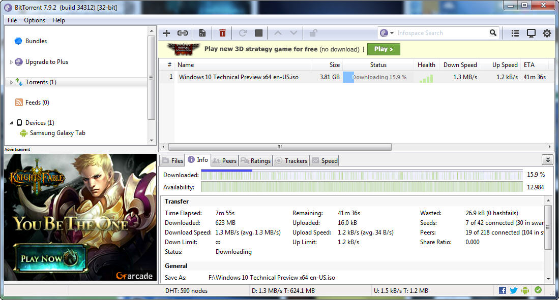 Và để chào mừng ngày Nàng Net “hồi xuân” lần thứ Nx. (vì còn nhiều khả năng sẽ tiếp tục đứt tiếp do thực tế thiết kế kỹ thuật của đường cáp AAG không thiệt tốt), đồng thời “ham vui” cùng Microsoft trong sự kiện nấu xôi chè đặt tên cho hệ điều hành mới là Windows 10 (tôi bèn cho nó cái nickname: “Windows tèn tén ten”), tôi đã bắt đầu download bản cài đặt (file iso 3,8GB) của phiên bản Windows Technical Preview của Windows 10. Phải nói là đường Net mượt mà (nhà tôi xài cáp quang của VNPT), tốc độ tải về 1.3MB/s.