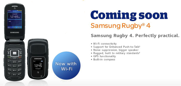 (STS:09.10.2014) Nhà mạng di động Mỹ AT&T loan báo vào ngày 10-10-2014 chính thức ra mắt chiếc điện thoại Samsung Rugby 4. Điều đáng ngạc nhiên khi đây là loại điện thoại vỏ sò nắp gập thời cổ lai hy. Chỉ có điều, bây giờ, điện thoại này hỗ trợ mạng 4G, kết nối Wi-Fi, có GPS, địa bàn,… Nó được sản xuất với tiêu chuẩn quân sự MIL-STD-810G và chuẩn IP67 chống vô nước, chịu va đập tốt. Màn hình nhỏ xíu nhưng có tùy chọn pin dung lượng tới 2000mAh.