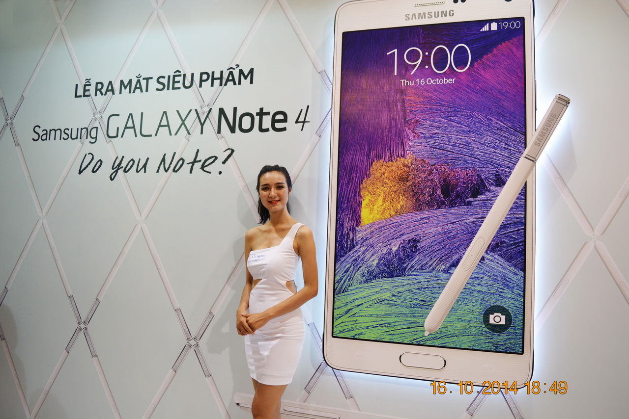 (STS:18.10.2014) Với giá bán chính hãng 17.990.000 đồng, chiếc smartphone Samsung Galaxy Note 4 dung lượng bộ nhớ lưu trữ 32GB sẽ chính thức lên quầy ở Việt Nam vào ngày 24-10-2014 với 4 màu đen tuyền (charcoal black), trắng tuyết (frost white), hồng phấn (blossom pink) và đặc biệt là vàng đồng (bronze gold). Đó là thông tin do Samsung Việt Nam công bố trong buổi ra mắt chính thức chiếc phablet flagship mới của Samsung ở Việt Nam tại TP.HCM tối 16-10-2014. Việt Nam là điểm đến mới trong chuyến World Tour toàn cầu của Note 4, khởi đầu từ Hàn Quốc và Trung Quốc ngày 29-9-2014.