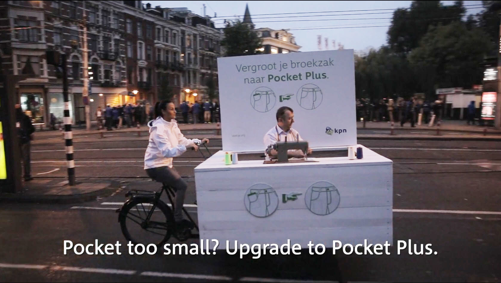 Thật ra, giải pháp này đã được nhà mạng di động Royal KPN tại Amsterdam (Hà Lan) áp dụng từ cuối tháng 9-2014. Ngay từ sáng sớm ngày phát hành iPhone 6, họ đã cho một chiếc xe đạp loại ba gác chở một quầy “thợ may di động” (mobile tailor) tới cửa hàng Apple Store. Trong khi chờ đợi mua iPhone 6 Plus, khách hàng nào có nhu cầu đã được nhân viên quầy “Pocket Plus” cho mượn chiếc áo choàng ngủ dài mặc tạm trong khi chờ thợ may mở rộng chiếc túi của chiếc quần jeans cho vừa cỡ iPhone 6 Plus.