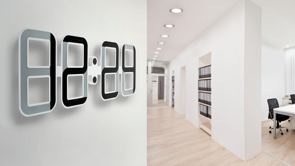 (STS:06.11.2014) Những chiếc đồng hồ ClockONE của công ty Twelve24 không chỉ là chiếc đồng hồ điện tử dạng số mà còn là vật trang trí treo tường bắt mắt. Những chữ số to đùng của nó giúp người ta thoát khỏi nạn phải mở mắt hết cỡ mỗi khi nhìn đồng hồ coi giờ.