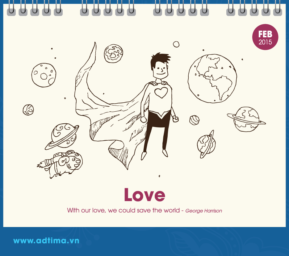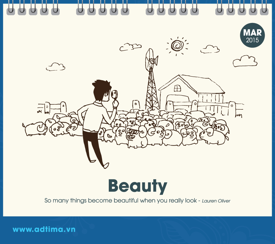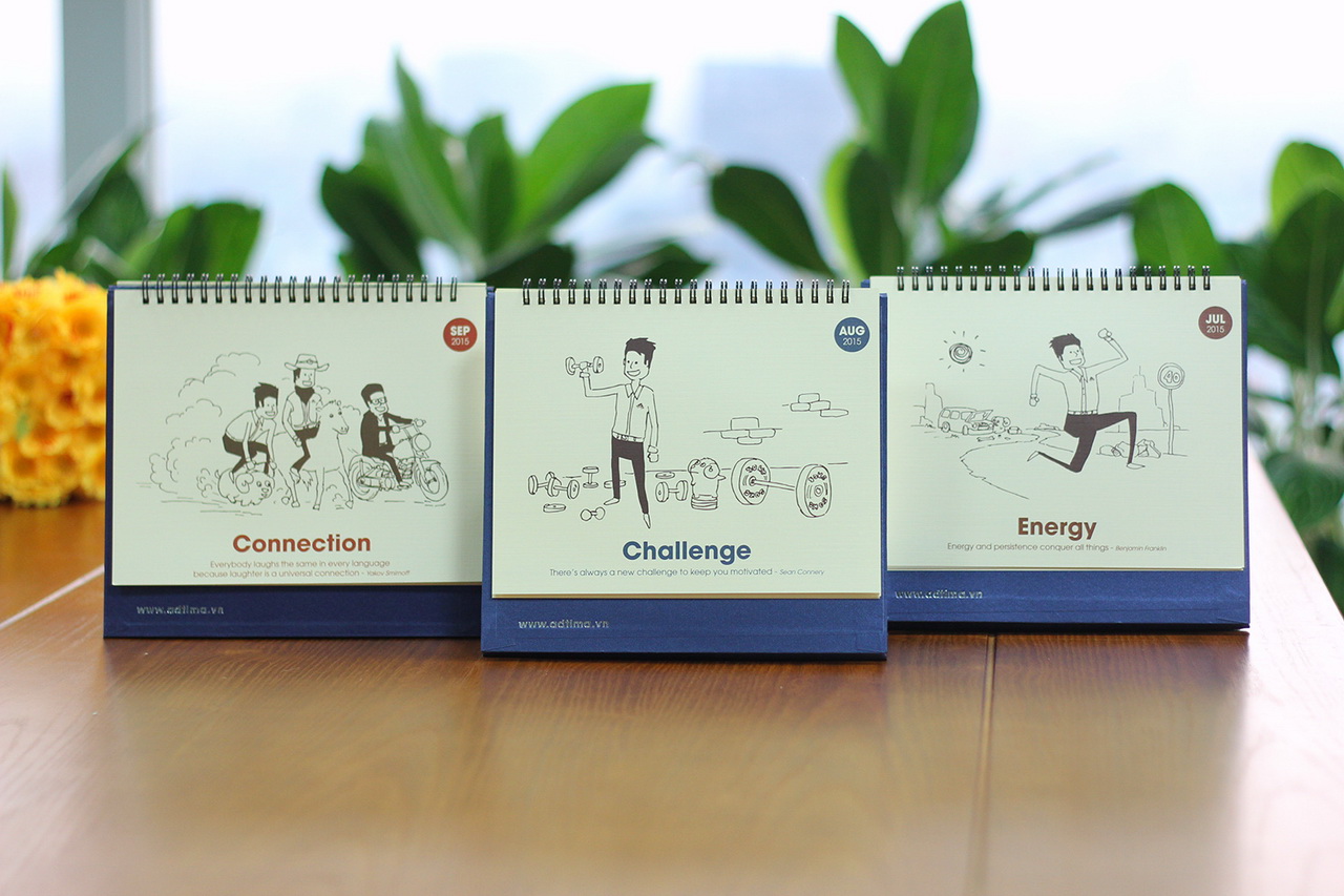 Bộ lịch để bàn này được thiết kế bởi Adtima – bộ phận phụ trách các sản phẩm quảng cáo truyền thông, giải trí của Công ty VNG. “Ngoài việc dùng để xem ngày tháng, bộ lịch này hy vọng sẽ mang đến nguồn cảm hứng cho các bạn marketer”, anh Đỗ Minh Hiền, người chịu trách nhiệm về thiết kế bộ lịch, cho biết.