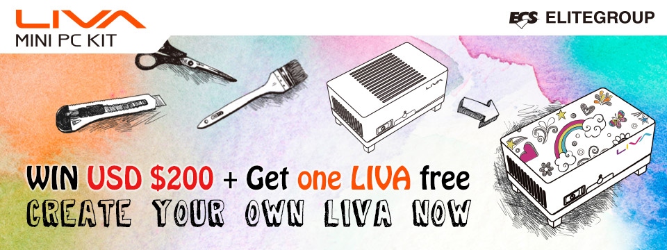 (STS:19.02.2015) Hãng ECS vừa công bố cuộc thi “Design your own LIVA” tại Việt Nam. Đây là cuộc thi được tổ chức lần lượt ở nhiều nơi trên thế giới, đầu tiên là tại Mỹ. Để tham gia sự kiện này rất đơn giản, bạn chỉ cần một chút khéo tay và có ý tưởng là có cơ hội nhận phần thưởng lên đến 4 triệu đồng và tặng phẩm giá trị là một máy tính PC siêu nhỏ LIVA.