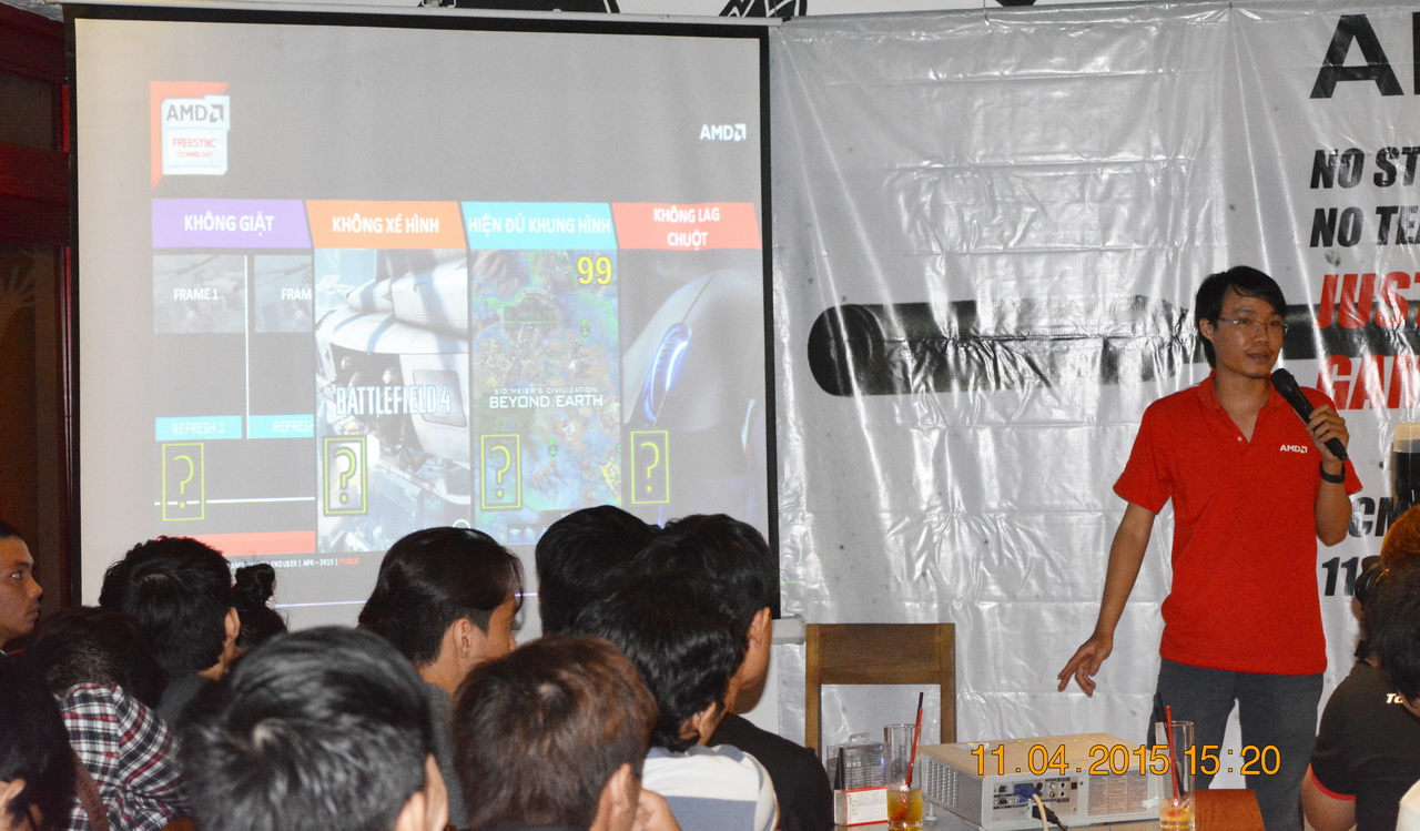 Hoạt động chính là giới thiệu về công nghệ màn hình FreeSync mới của AMD. Không đòi hỏi người dùng đang sở hữu card đồ họa AMD phải nâng cấp thêm thành phần nào nữa và tất nhiên cũng không tốn kém thêm chi phí, nhưng các game sẽ hoạt động mượt mà hơn với công nghệ AMD FreeSync được tích hợp trong bộ ứng dụng driver Catalyst mới nhất.