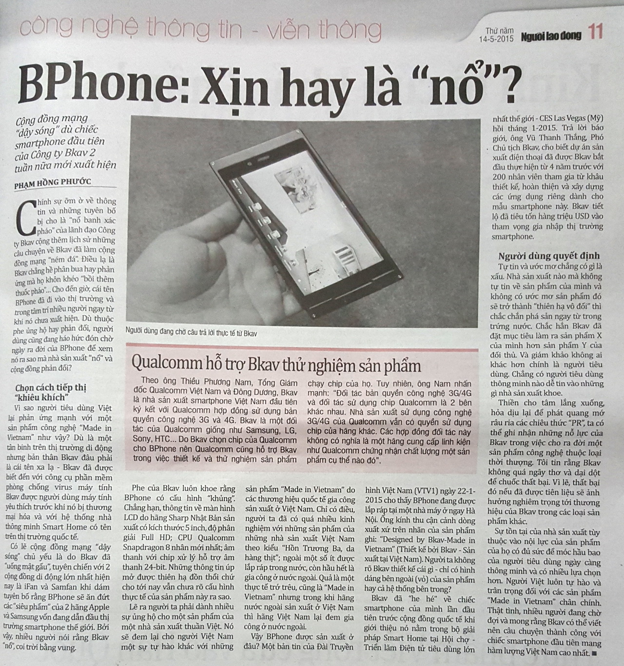 Nói gì thì nói, chưa biết sản phẩm cụ thể méo tròn ra sao, cho tới nay, Bkav đã thành công trong chiến dịch làm thương hiệu cho chiếc BPhone. Chính sự ỡm ờ về thông tin và những tuyên bố bị cho là “nổ banh xác pháo Bình Đà” của các nhà lãnh đạo công ty, cộng thêm lịch sử những câu chuyện về Bkav và vị Tổng giám đốc Nguyễn Tử Quảng, đã làm cộng đồng mạng dậy sóng. Điều cao tay ấn của Bkav là họ chẳng hề có một phản ứng trực tiếp nào đối với những ý kiến của cộng đồng, không phản đối mà cũng chẳng phân bua. Thay vào đó, họ khôn khéo cứ đổ thêm dầu vào lửa, tiếp tục “bồi thêm thuốc pháo”… Kết quả nhãn tiền là cho đến bây giờ, cái tên BPhone đã đi vào thị trường và trong óc nhiều người ngay từ khi nó chưa xuất hiện. Dù thuộc phe nào, người ta cũng đang háo hức đón chờ ngày ra đời của BPhone, đơn giản thì cũng là để coi nó ra làm sao mà nhà sản xuất “nổ” và cộng đồng “ném đá” dữ trời thần vậy?