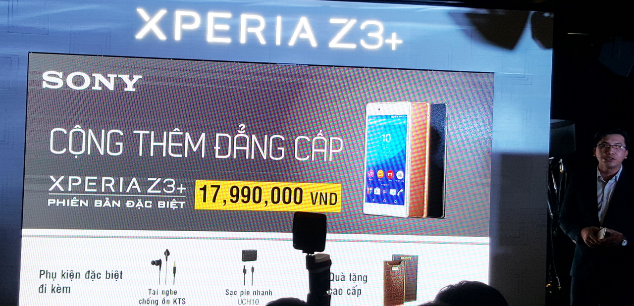 (STS:16.06.2015) Chiều 16-6-2015 tại TP.HCM, Sony Việt Nam đã chính thức ra mắt người dùng Việt Nam chiếc smartphone flagship mới của mình là Xperia Z3+ được nâng cấp từ mẫu Xperia Z3 ra đời hồi tháng 9-2014. Mẫu smartphone Android mới này đã được Sony giới thiệu vào tháng 5-2015, bắt đầu có trên thị trường từ tháng 6-2015. Nó còn được gọi là Xperia Z4 (ở Nhật Bản) hay Sony E6553. Và Sony cho biết họ chỉ đưa Xperia Z3+ vào một số thị trường có chọn lọc, chủ yếu có tiềm năng thị trường, và Việt Nam là một trong những điểm đến đó.