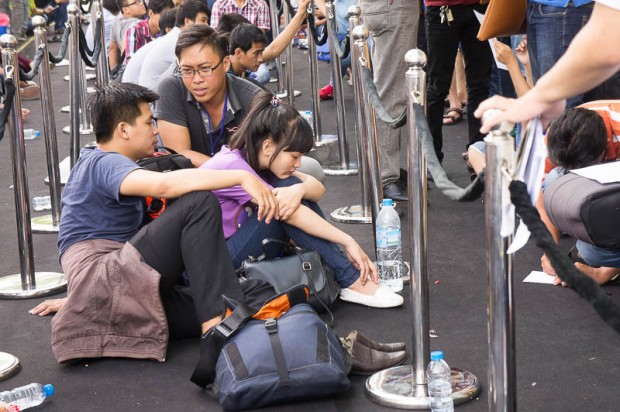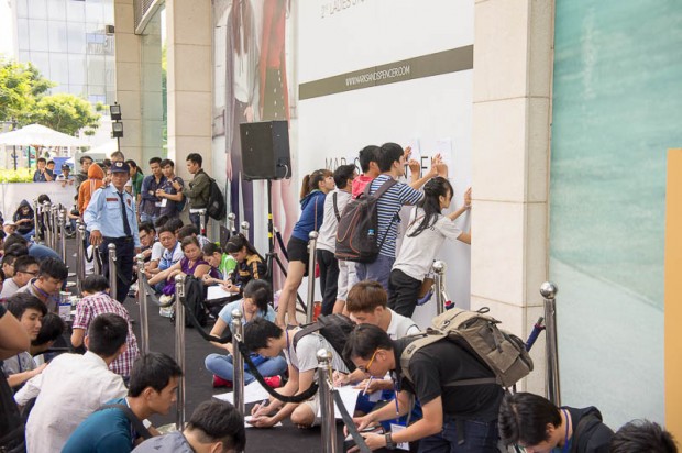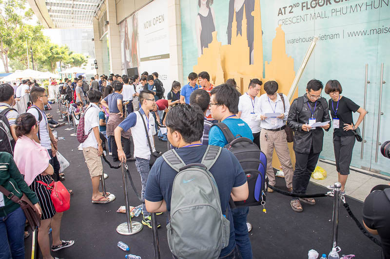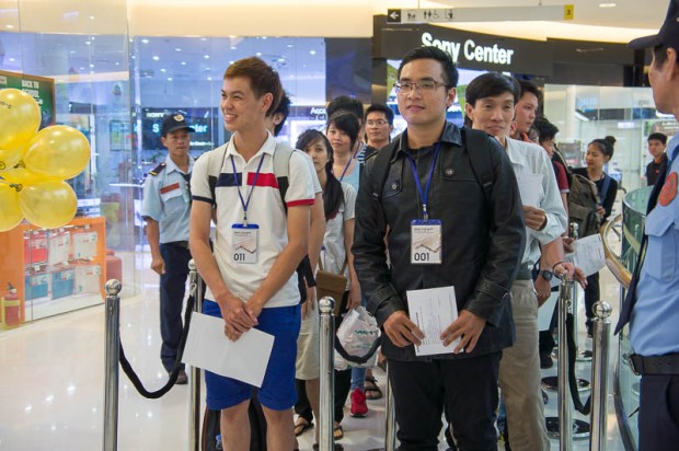 Là người có mặt sớm nhất và nhận được số thứ tự 001, bạn Trần Thiện Sang (Bình Chánh), hiện đang là sinh viên năm 3 trường đại học Hoa Sen cho biết đã có mặt tại khu vực chờ đợi tại Cresent Mall – Quận 7 vào lúc 11 giờ sáng ngày hôm qua (28/8).