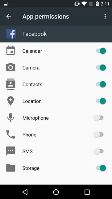 Nhiều người xài Android lâu nay vẫn hầm hè hậm hực với những quy định cấp phép ứng dụng (App permissions) phiền toái và nguy hiểm mỗi khi muốn cài đặt một ứng dụng nào đó. Giờ đây, với Andorid 6, thay vì phải đồng ý cho các ứng dụng được phép làm những việc gì đó trên thiết bị của mình trước khi có thể cài đặt chúng (như cho phép ứng dụng sử dụng danh sách Contacts, thư viện hình ảnh, máy ảnh, hệ thống Wi-Fi,…), bây giờ bạn chỉ đơn giản là tải ứng dụng đó về, có quyền cho phép nó được sử dụng những tài nguyên nào mà bạn muốn. Chẳng hạn, bạn có thể quyết định có cho Instagram dòm ngó các hình ảnh của mình không hay WhatsApp có được biết vị trí của bạn không. Tất nhiên có những ứng dụng bắt buộc bạn phải cho phép nó sử dụng những dữ liệu, hệ thống nào đó mới có thể hoạt động được (như bản đồ, dẫn đường, tìm kiếm,… phải có Wi-Fi, vị trí, GPS,…) Nói gọn là với Android 6, bạn loại bỏ được nguy cơ bị đủ thứ ứng dụng chiếm dụng tài nguyên và thông tin cá nhân của mình một cách vô tội vạ. Ai đời ứng dụng xem lịch mà mắc mớ gì đòi phải được cho xài ké máy ảnh, tò mò xem danh sách liên lạc, biết vị trí của bạn,…