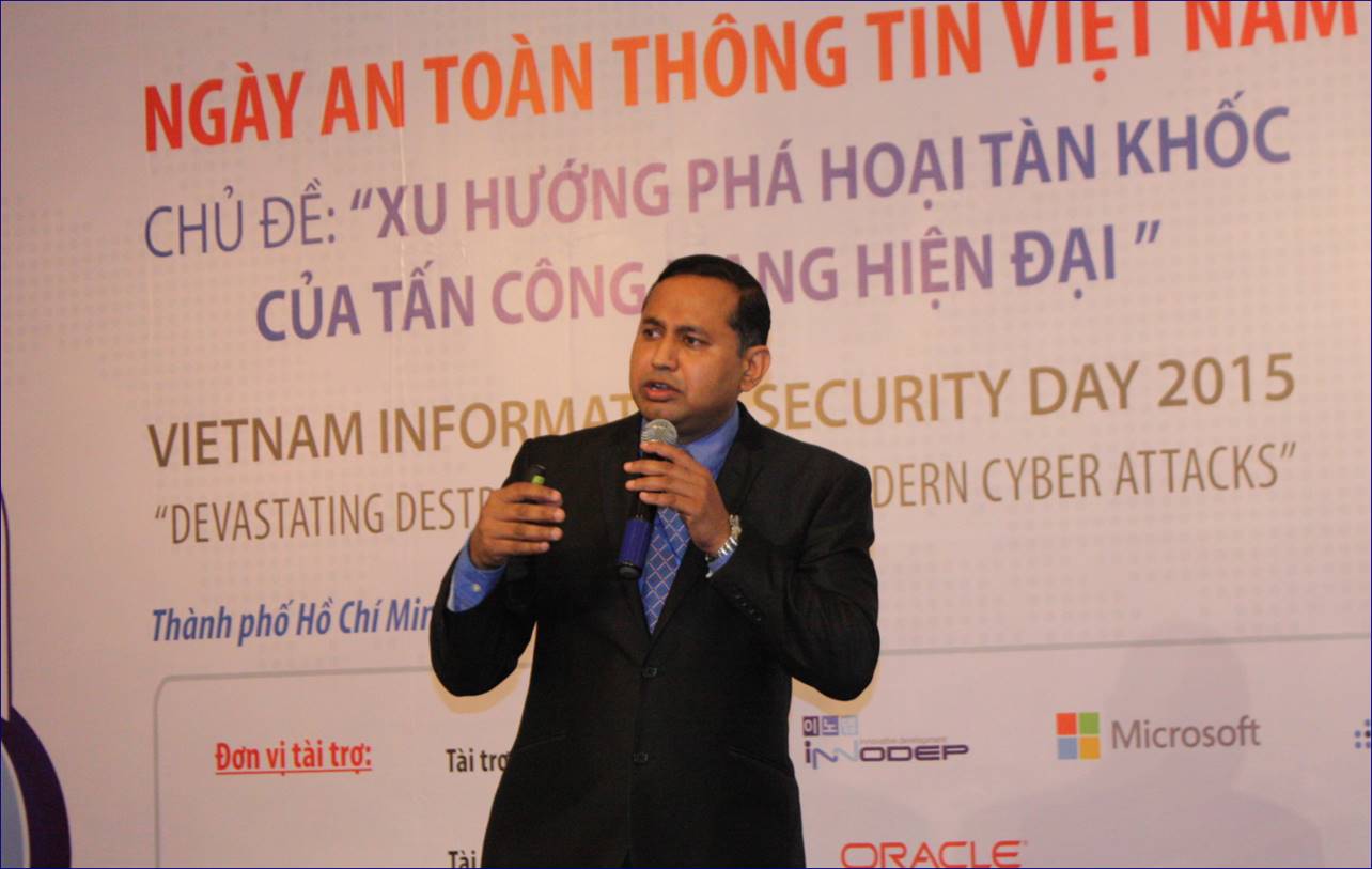 Là một tập đoàn hàng đầu về ATTT và an ninh mạng, với bề dày kinh nghiệm xử lý các bài toán ATTT cấp toàn cầu, Microsoft đã được mời thuyết trình trong phiên hội thảo chính. Trong bài thuyết trình mang tên “Cảnh báo về gia tăng thách thức an ninh mạng; Hoạt động phòng chống tội phạm công nghệ và Phương pháp xây dựng Đám mây tin cậy đảm bảo độ an toàn và riêng tư cho dữ liệu”, ông Keshav S Dhakad, Thẩm phán Cao cấp, Trung tâm Phòng chống Tội phạm Mạng châu Á, Microsoft châu Á – Thái Bình Dương, đã đưa ra những phân tích chuyên sâu và chia sẻ về tình hình và xu thế an ninh mạng của thế giới và khu vực.