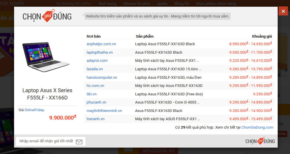 Khi click vào nút của công cụ so sánh giá này, người muốn mua hàng sẽ được cung cấp bảng tham khảo giá của nhiều nơi bán khác.