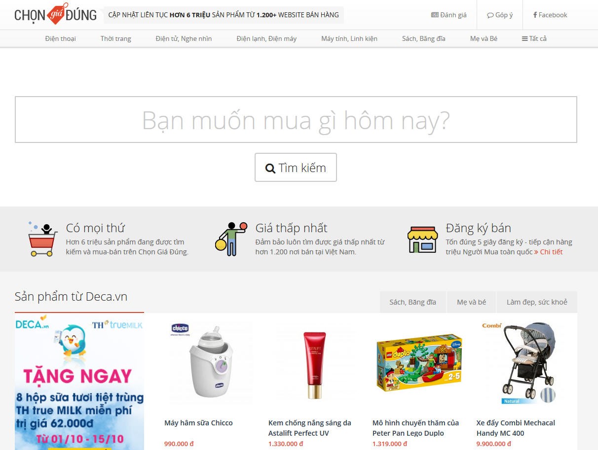 Chọn Giá Đúng bắt đầu hoạt động từ năm 2014 là một cỗ máy (engine) tìm kiếm sản phẩm và so sánh giá được thiết kế nhằm mục đích hỗ trợ người mua hàng qua mạng. Bằng công cụ và thuật toán của mình, website Chọn Giá Đúng cho biết họ có thể cập nhật liên tục giá cả của hơn 6 triệu mặt hàng thuộc nhiều ngành hàng đang bán ở hơn 1.200 website. Họ giúp cho những người mua online thực hiện chuỗi hành vi mua sắm của mình một cách nhanh chóng, tiện lợi, thông minh và an toàn chỉ trên 1 website duy nhất – chongiadung.com, thay vì phải thao tác trên hàng loạt website khác nhau. Trước khi muốn đặt hàng mua một món hàng gì đó trên Internet, thậm chí mua tại cửa hàng, siêu thị, người tiêu dùng có thể tham khảo trên website Chọn Giá Đúng các tính năng của mặt hàng, có kèm các hình ảnh cụ thể của nó, rồi tham khảo giá bán của mặt hàng này tại một số website bán hàng khác nhau. Nhờ vậy, người tiêu dùng có thể mua hàng mình cần với giá hợp lý nhất.