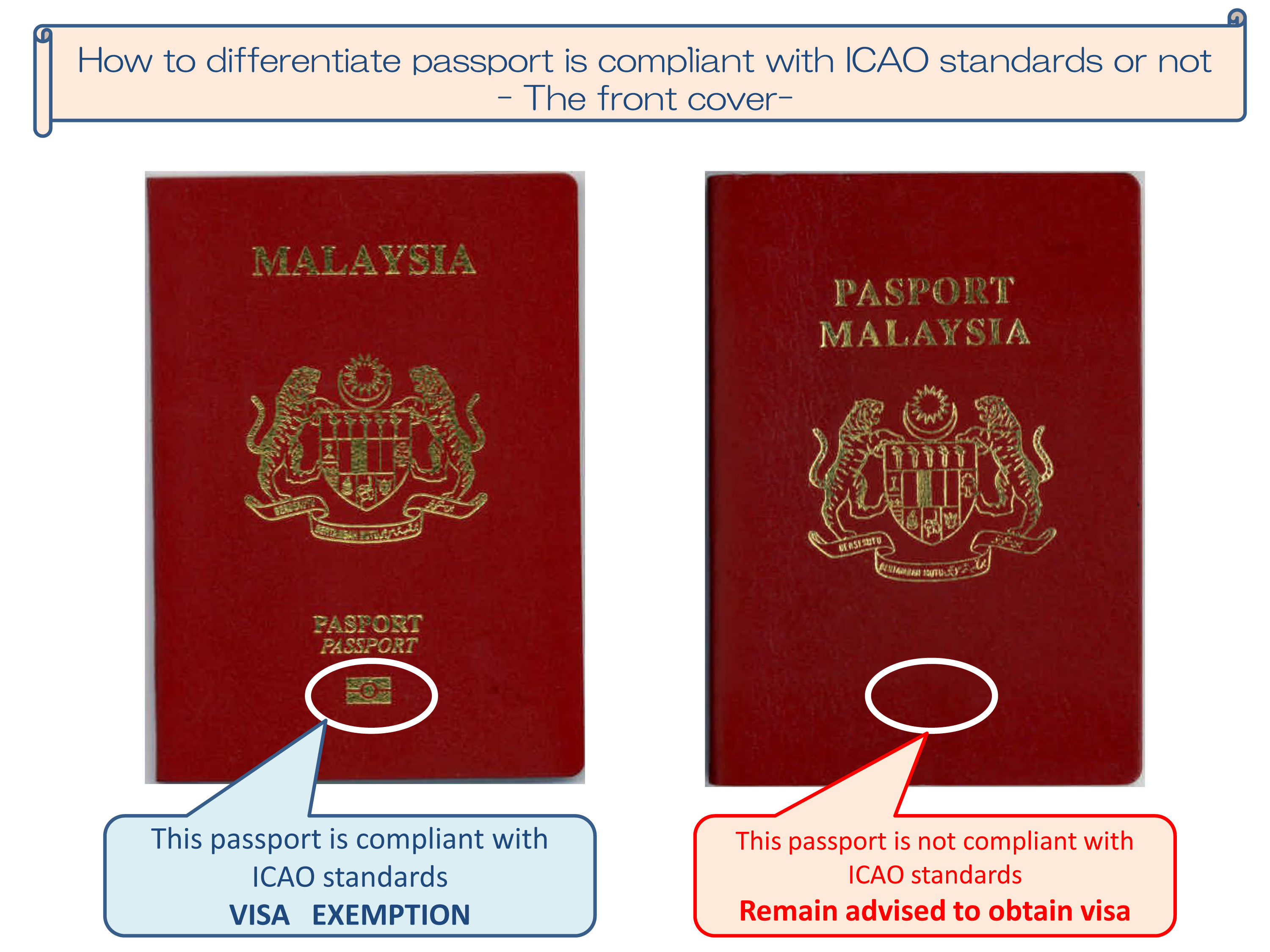 Hộ chiếu điện tử phù hợp với các chuẩn của Tổ chức Hàng không Dân dụng Quốc tế (ICAO) để có thể sử dụng khi đi máy bay. Loại hộ chiếu này là yêu cầu bắt buộc phải có của công dân thuộc nhóm các nước được Hoa Kỳ miễn thị thực nhập cảnh (visa) trong chương trình Visa Waiver Program (VWP) cho tới nay được Hoa Kỳ chấp nhận cho 38 quốc gia và vùng lãnh thổ. Ở châu Á, VWP hiện gồm Brunei, Đài Loan, Hàn Quốc, Nhật Bản, và Singapore.