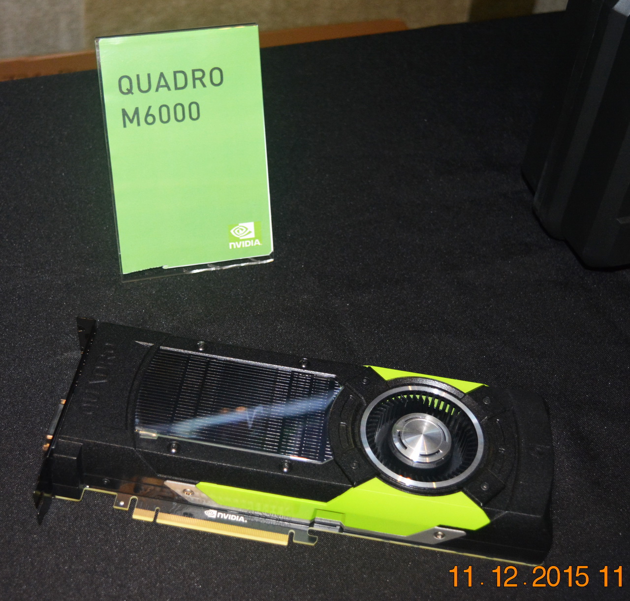 Tại sự kiện ở Singapore, ông Bob Pette, Phó Chủ tịch kiêm Tổng giám đốc nhóm Quadro của NVIDIA, đã trình diễn cho các media công nghệ trong khu vực khả năng của cỗ máy render Iray kết hợp với sức mạnh xử lý đồ họa của Quadro. Ông đã dùng một chiếc tablet NVIDIA Shield Tablet K1 màn hình 8 inch (1920 x 1200 pixel) chạy CPU NVIDIA Tegra K1 ARM Cortex A15 tốc độ 2,2GHz và GPU Kepler 192 nhân cùng RAM 2GB trên hệ điều hành Android 5.0 Lollipop để thực hiện tác vụ render một mẫu xe hơi BMW. Ông cho mô hình chiếc xe thay đổi màu và xoay theo các góc. Tác vụ render nặng này được thực hiện với kết nối wireless giữa tablet và một máy trạm. Điều đáng chú ý là nếu như trước đây, tác vụ này đòi hỏi sức mạnh của cả một server thì nay chỉ cần một tablet và một workstation trang bị 2 card đồ họa Quadro M6000.