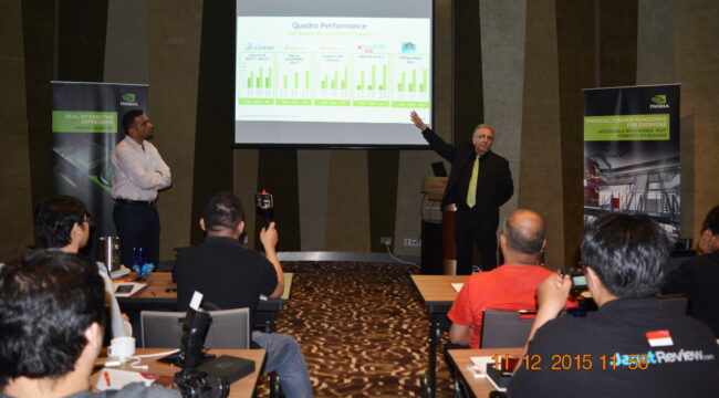 Trong sự kiện NVIDIA Regional Media Briefing được tổ chức tại Singapore ngày 11-12-2015, hãng NVIDIA đã giới thiệu với những người viết về công nghệ trong khu vực hai điểm nhấn của mình hiện nay. Đó là sự ứng dụng sâu rộng của nền tảng xử lý đồ họa Quadro và thực tế ảo (Virtual Reality, VR).