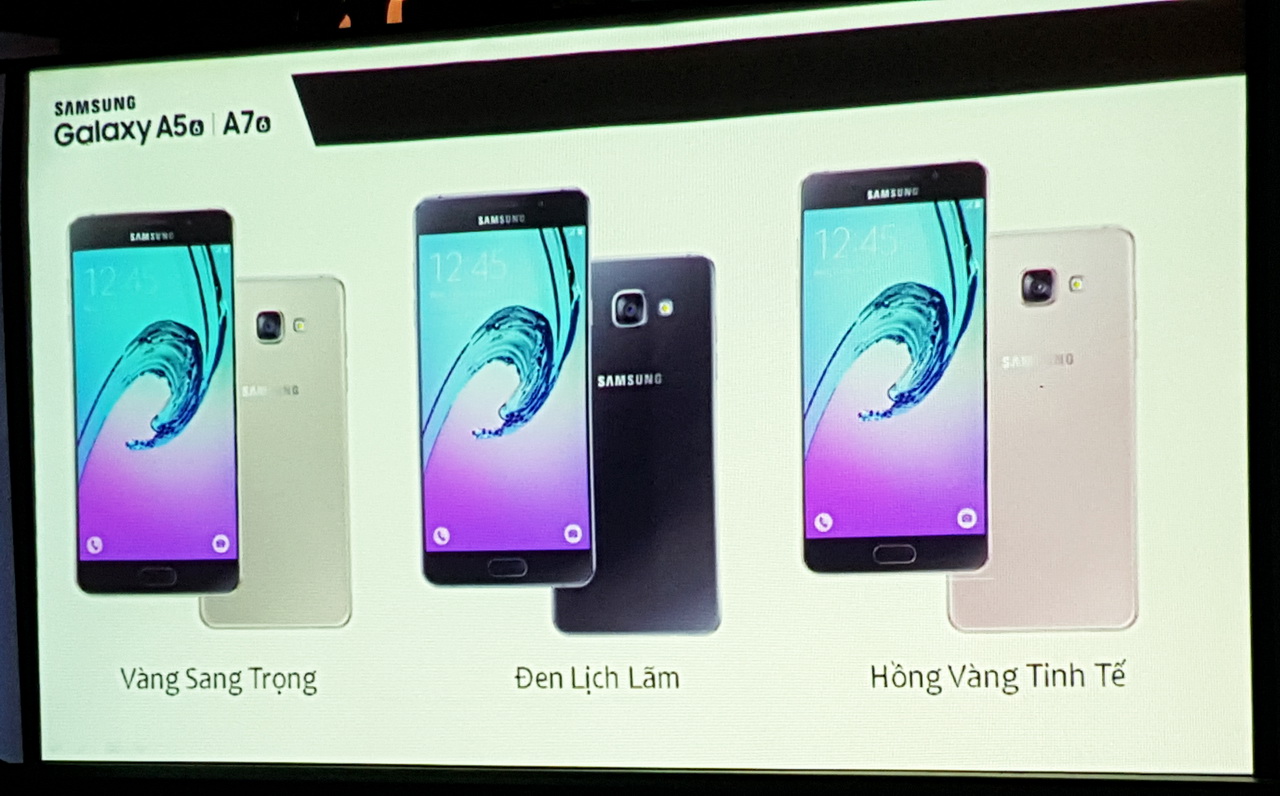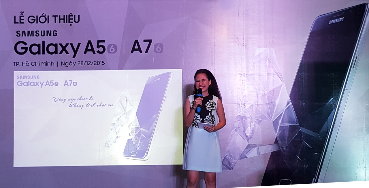 (STS:29.12.2015) Hai chiếc smartphone Galaxy A series mới là A5 và A7 phiên bản năm 2016 đã được Công ty Điện tử Samsung Vina ra mắt tại TP.HCM tối 28-12-2015. Tuy là smartphone phân khúc tầm trung nhưng Galaxy A5 (2016) và Galaxy A7 (2016) thừa hưởng thiết kế đặc trưng của dòng smartphone cao cấp Samsung Galaxy S6 khi được chế tác tinh xảo từ hai chất liệu kính và kim loại cao cấp. Ngoài ra, Galaxy A5 (2016) và Galaxy A7 (2016) còn có camera được nâng cấp, hiệu năng mạnh mẽ và đặc biệt là tính năng sạc nhanh thông minh, hỗ trợ cảm biến dấu vân tay.