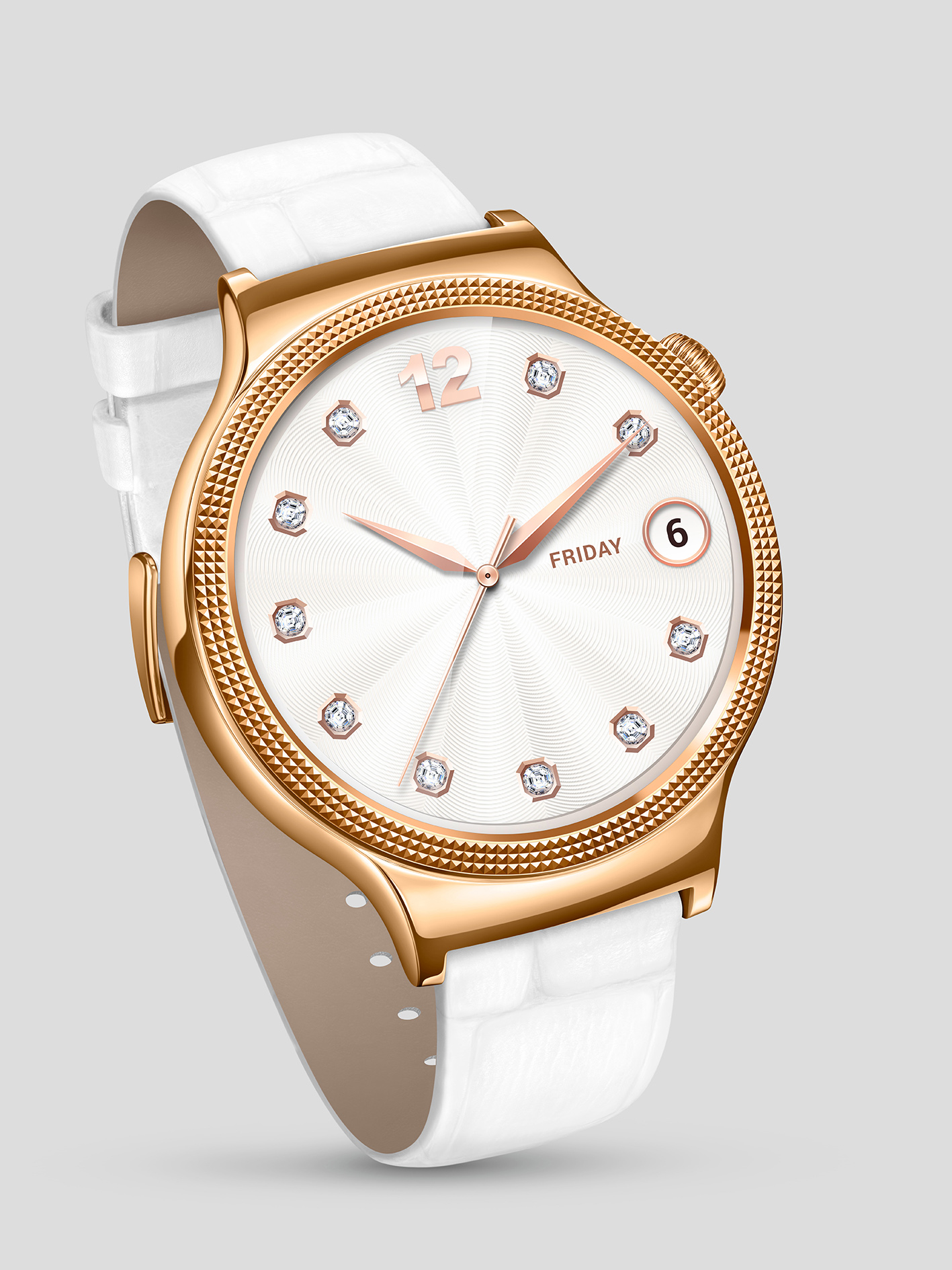 Phiên bản Jewel được đính kết bằng những viên đá cao cấp Swarovski Zirconia lấp lánh quanh lớp vỏ vàng hồng cho vẻ ngoài sang trọng và nổi bật. Trong khi đó, phiên bản Elegant đẹp tinh tế và khác biệt nhờ hoa văn nổi hiển thị xung quanh vỏ đồng hồ màu vàng hồng. Một điểm đáng chú ý khác ở phiên bản Huawei Watch mới là dây đeo bằng da thật của Ý với 2 màu trắng ngọc trai và xanh sapphire để người dùng lựa chọn.