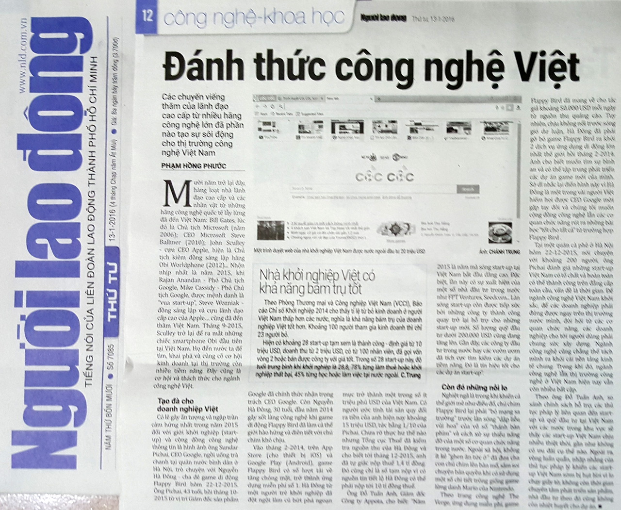 Xin mời đọc bài in trên báo Người Lao động thứ Tư 13-1-2016 và trên báo Người Lao động Online:
