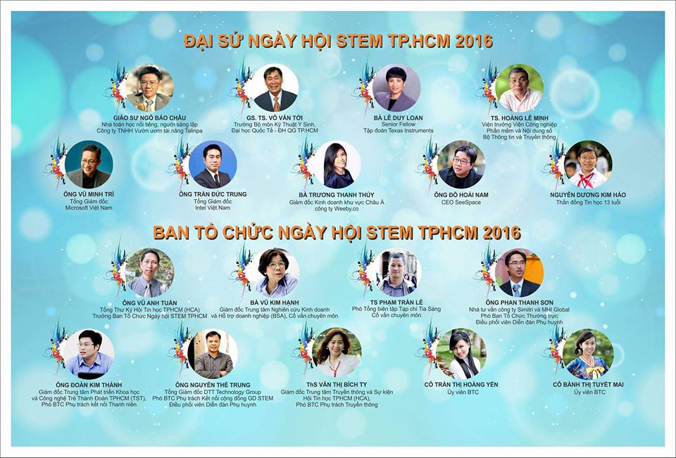 (STS:18.01.2016) Ngày hội STEM TP.HCM lần đầu tiên đã được Hội Tin học TP.HCM, Trung tâm Khoa học Công nghệ trẻ Thành đoàn TP.HCM (TST) phối hợp cùng Tạp chí Tia Sáng thuộc Bộ Khoa học và Công nghệ tổ chức trong 2 ngày 16 và 17-1-2016. STEM là viết tắt của Khoa học (Science), Công nghệ (Technology), Kỹ thuật (Engineering) và Toán học (Mathematics). Đây là chương trình miễn phí được thiết kế đặc biệt, hướng đến hiện thực hóa nhu cầu trang bị kiến thức và kỹ năng tích hợp về khoa học, công nghệ, kỹ thuật và toán học cho trẻ em Việt Nam.