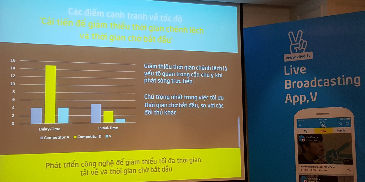 V đang sở hữu năng lực kỹ thuật vượt trội về tốc độ, chất lượng hình ảnh (như lọc camera để tạo hiệu ứng đẹp ngay tại thời điểm ngôi sao đang phát sóng) so với dịch vụ truyền hình video trực tiếp toàn cầu thông thường.