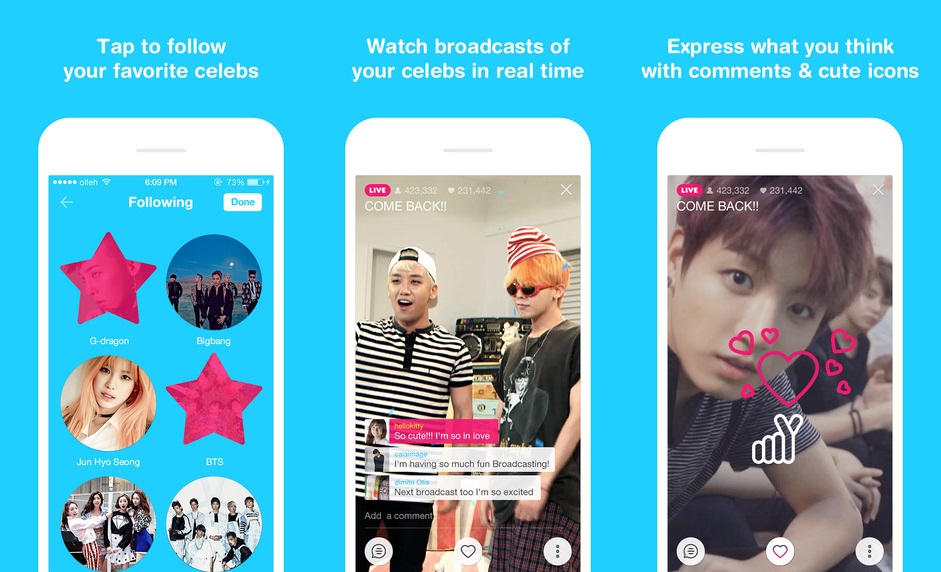 Các ngôi sao Hàn Quốc đã tham gia vào ứng dụng V