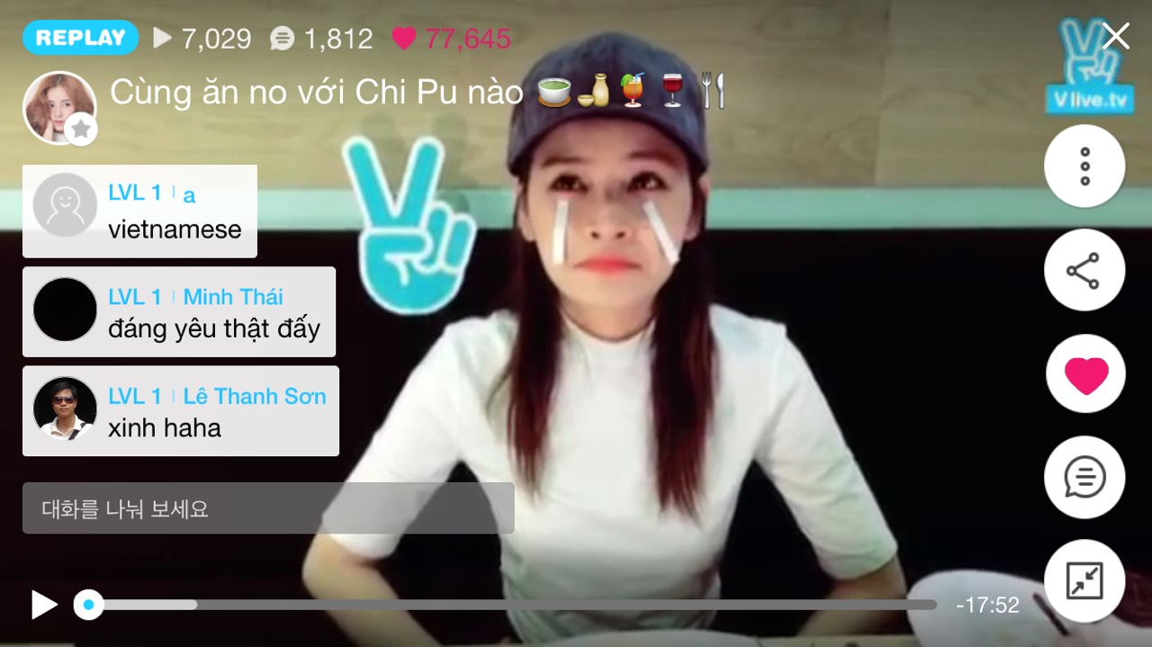 Xin mời xem một video V Live có phụ đề Việt ngữ.