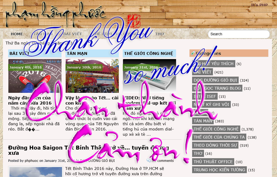 Ngày 3-2-2016, tôi bỗng dưng muốn khóc vì trang web phamhongphuoc.net của mình bỗng dưng bị cắt dứt dây chuông khiến tôi phải hát lại vở tuồng cải lương Lan và Điệp.