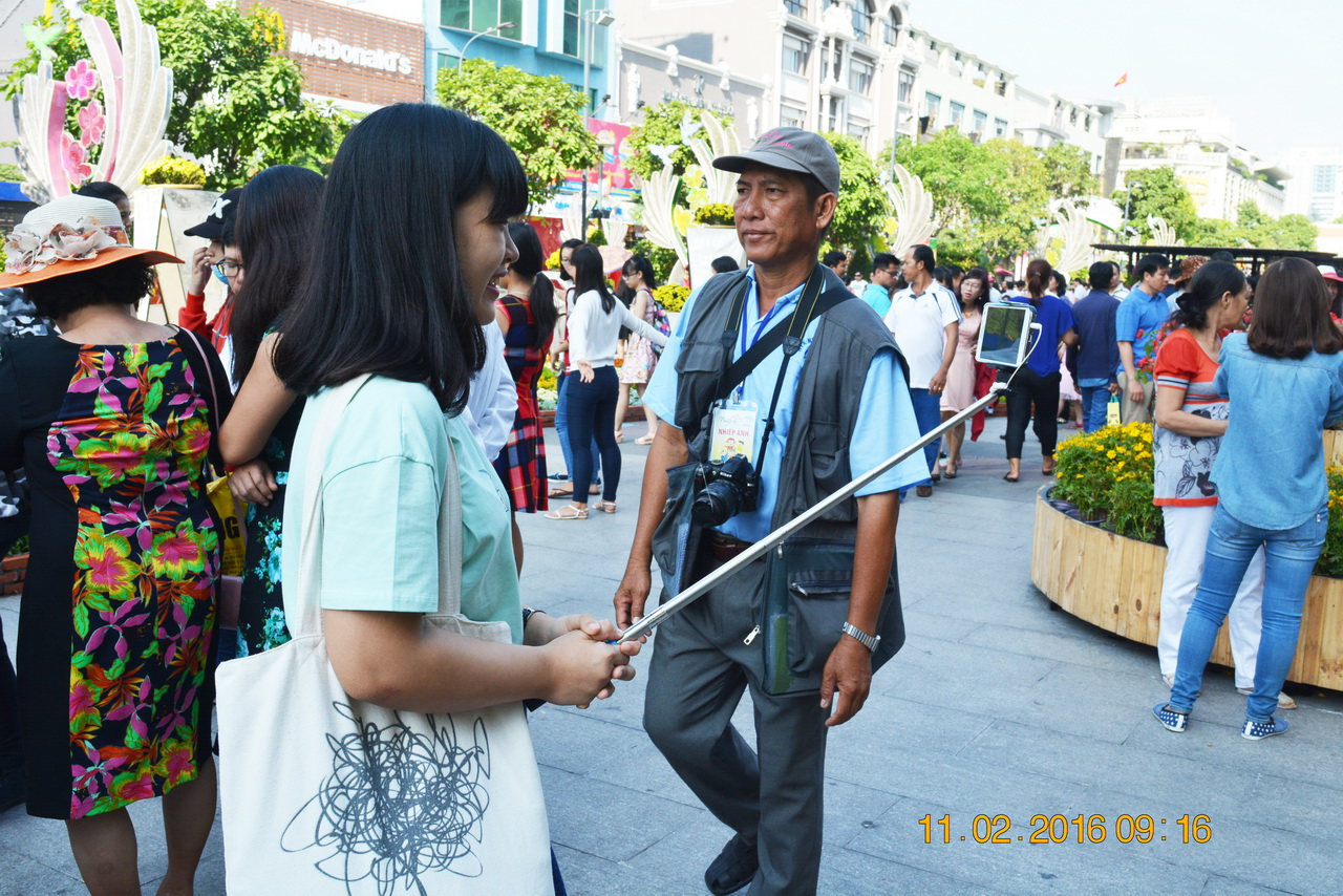 Tết năm nay, lực lượng thợ chụp ảnh ở Đường Hoa Nguyễn Huệ vẫn còn khá nhiều. Họ đã chuyển sang xài máy ảnh số hết rồi. Tôi thì biết họ và từng nhiều phen là khách hàng của họ thời còn xài máy ảnh chụp phim. Hỏi thăm thì họ nói vài năm nay làm ăn bết bát lắm, vì sau thời máy ảnh số mini (dạng compact) phổ cập do giá ngày càng giảm sâu, bây giờ tới thời của smartphone lên ngôi chụp ảnh. Với smartphone, người ta không chỉ chụp ảnh cảnh trí, chụp ảnh người khác mà còn có thể dễ dàng chụp ảnh cho chính mình. Chụp xong là sẵn có Wi-Fi miễn phí ở Đường Hoa, người ta có thể post ngay lên Facebook trong vòng 1 hay 2 nốt nhạc.