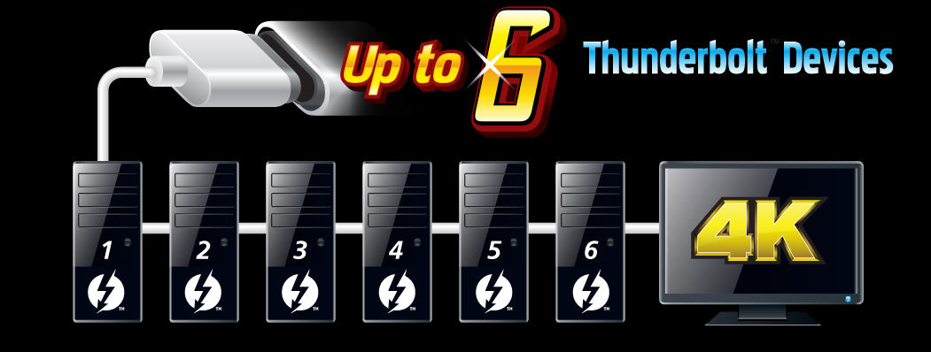 Thunderbolt 3 trên USB Type-C hỗ trợ DisplayPort 1.2, có khả năng hiển thị hình ảnh độ phân giải 4K ở 60fps, và các tính năng tiên tiến mang tính cách mạng như cấp nguồn lên đến 36W, cũng như khả năng kết nối tuần tự (daisy-chain) cùng lúc lên đến 6 thiết bị trên mỗi cổng USB Type-C.