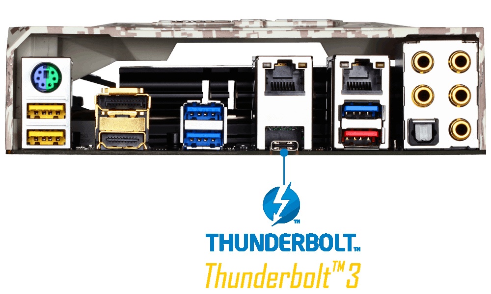 Kết nối Thunderbolt 3 trên bo mạch chủ giúp loại bỏ một cách hữu hiệu hơn tình trạng thắt cổ chai thường gặp, nhất là ở các hệ thống tải nặng. Với khả năng truyền tải các tập tin dung lượng cực lớn – chẳng hạn như video 4K thô – chỉ trong một vài giây của Thunderbolt 3, người dùng sẽ đỡ phải chờ đợi và có thể dành nhiều thời gian hơn để thỏa sức sáng tạo.