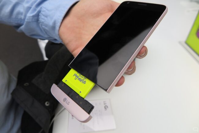 G5 có thiết kế đặt biệt Modular Type với phần đuôi có thể tháo rời để lắp thêm các module mở rộng khả năng như hệ thống Hi-Fi audio (hiện có module Bang & Olufsen với 32-bit Hi-Fi DAC), bộ điều khiển máy ảnh cơ LG Cam Plus camera grip,…