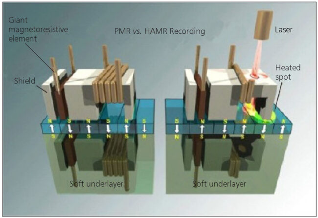 Để có thể đạt tới mật độ ghi dữ liệu khủng khiếp này, ba công ty đã hợp tác với nhau kết hợp 2 công nghệ HDD chính ngày nay là ghi nhiệt từ Heat-Assisted Magnetic Recording (HAMR) và ổ đĩa chứa khí helium. HAMR là một công nghệ lưu trữ từ tính cho HDD hiện đại dùng một tia laser nhỏ để làm nóng khu vực đĩa đang được ghi vào. Hiệu quả của HAMR là cho phép ghi với kích thước nhỏ hơn trước đây, nhờ đó có thể gia tăng dung lượng dữ liệu có thể ghi được trên một phiến đĩa chuẩn.