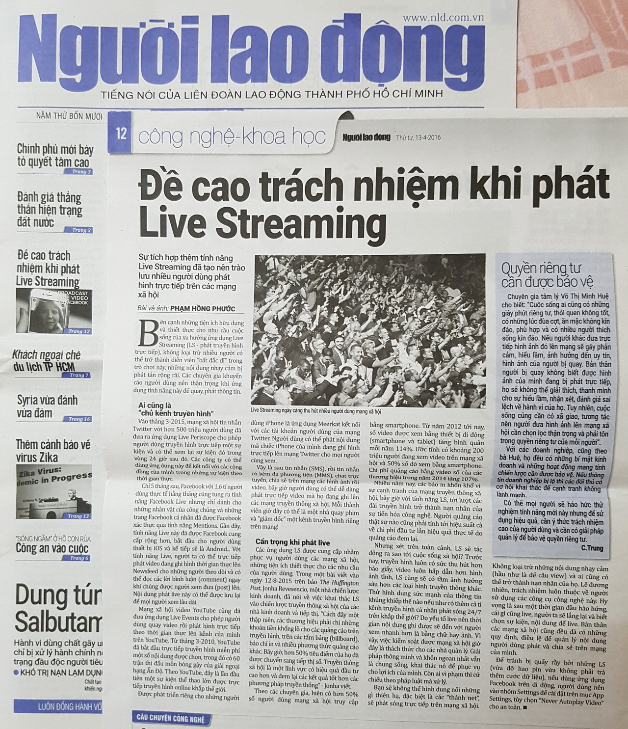 Xin mời đọc bài in trên báo Người Lao Động 13-4-2016 và trên báo Người Lao Động Online