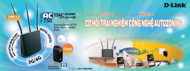 Để khách hàng có thêm cơ hội trải nghiệm công nghệ Autozoning, D-Link Việt Nam tổ chức chương trình khuyến mãi dành cho các khách hàng mua Wi-Fi router D-Link DSL-2877AL