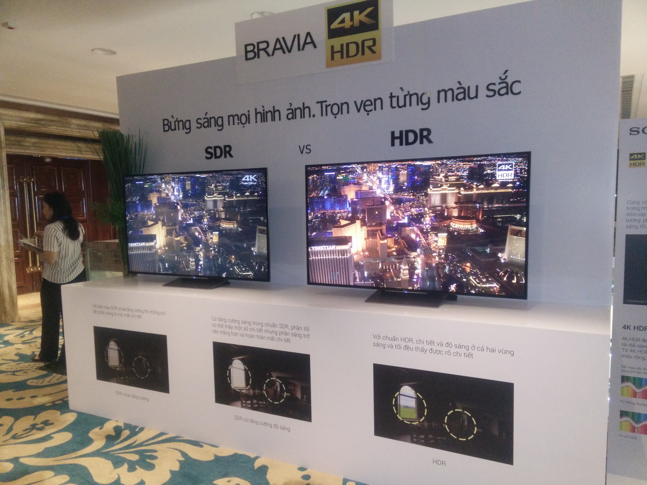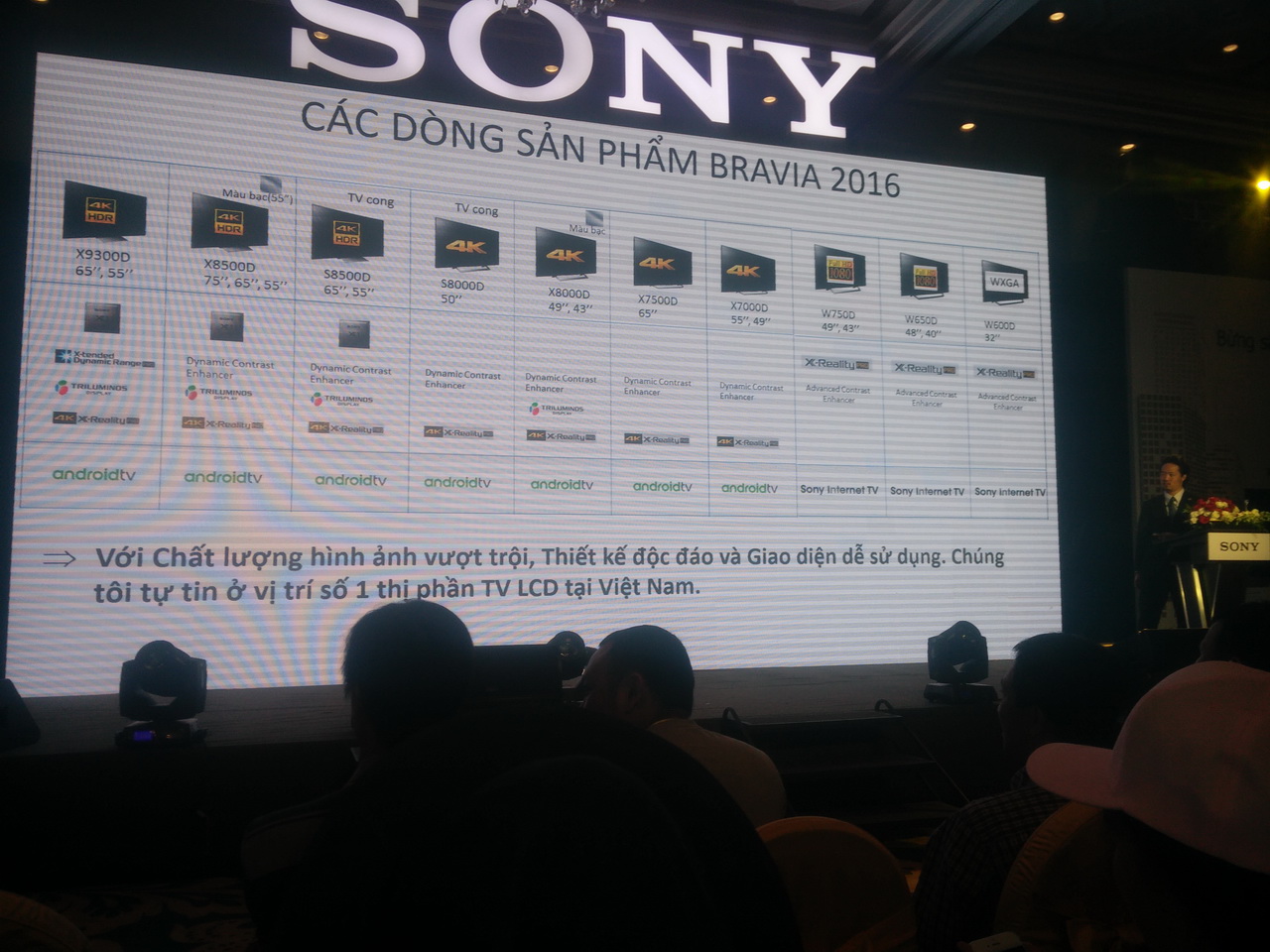 (STS:20.04.2016) Công ty Sony Electronics Việt Nam ngày 20-4-2016 đã chính thức giới thiệu dòng TV Bravia 4K HDR hoàn toàn mới tối ưu khả năng hiển thị hình ảnh thông qua việc mở rộng dải ánh sáng và dải màu sắc. Với Sony Bravia 4K HDR, độ tương phản tối ưu hơn, sắc màu rực rỡ hơn và hình ảnh chi tiết sắc nét, nhờ vào các công nghệ độc quyền của Sony X-tended Dynamic Range PRO (độ tương phản), TRILUMINOS Display (màu sắc rực rỡ), 4K X-Reality PRO (độ chi tiết). Bên cạnh đó, TV Bravia 4K HDR còn được trang bị công nghệ đèn nền mới Slim Backlight Drive của Sony, cho phép điều hướng ánh sáng thông minh chính xác đến từng khu vực hiển thị trên toàn bộ màn hình, giúp hình ảnh có độ tương phản vượt bậc và chất lượng hình ảnh đỉnh cao trong một thiết kế TV cực mỏng theo phong cách hòa quyện không gian sống “Slice of Living”. TV này có các lựa chọn kích thước từ 55 inch đến 75 inch.
