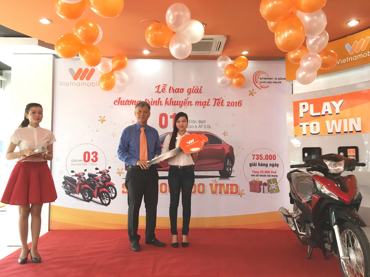 Ngày 21-4-2016 vừa qua, đại diện Vietnamobile cũng đã tổ chức lễ trao giải thưởng cho hai khách hàng Nguyễn Vũ Sơn và Võ Ngọc Thu tại TP. HCM, riêng khách hàng Nguyễn Thị Tình sẽ nhận thưởng sau đó tại Hà Nội.